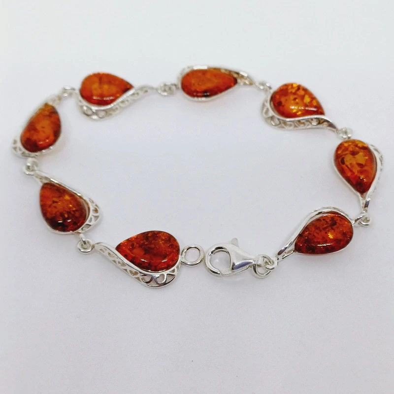 Jantarové kapky, které tvoří hlavní ozdobu náramku, jsou vyrobeny z přírodního jantaru, jehož teplé, zlatavé a medové odstíny vytvářejí nádherný kontrast se stříbrnými prvky. Jantar je známý svými pozitivními vlastnostmi, jako je ochrana a podpora klidu a pohody.