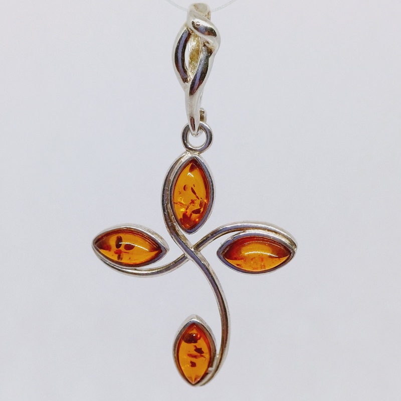 Přívěsek Křížek ohýbaný s jantarovýma kapkama