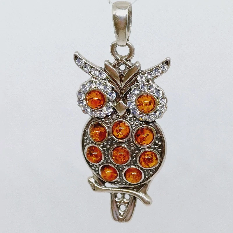 Přívěsek Sova s jantarovými kamínky
