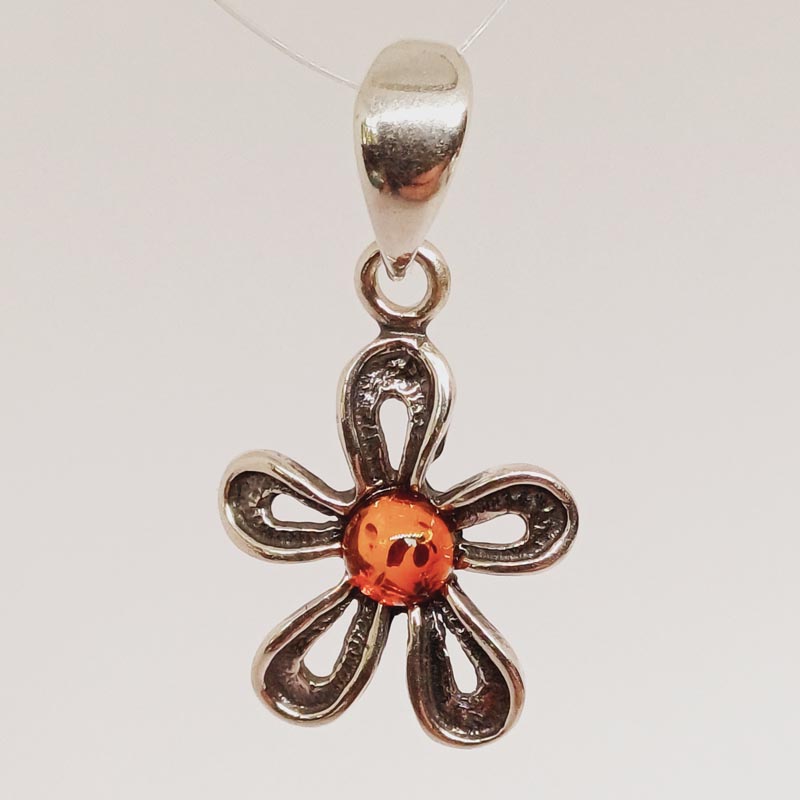 Přívěsek Stříbrná kytička s jantarovou kuličkouSkladem190 Kč/ ks157 Kč bez DPH